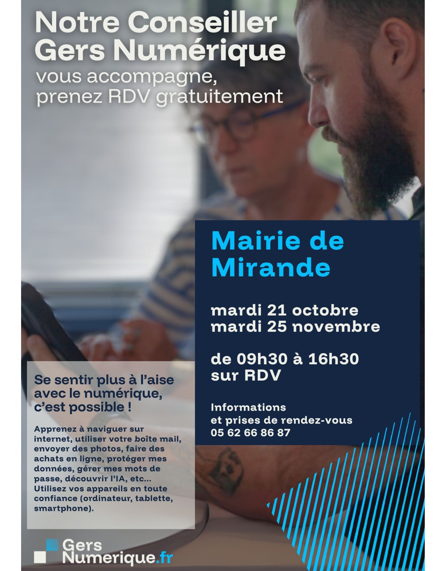 Rencontre avec un conseiller numérique bd Clémenceau32300 Mirande