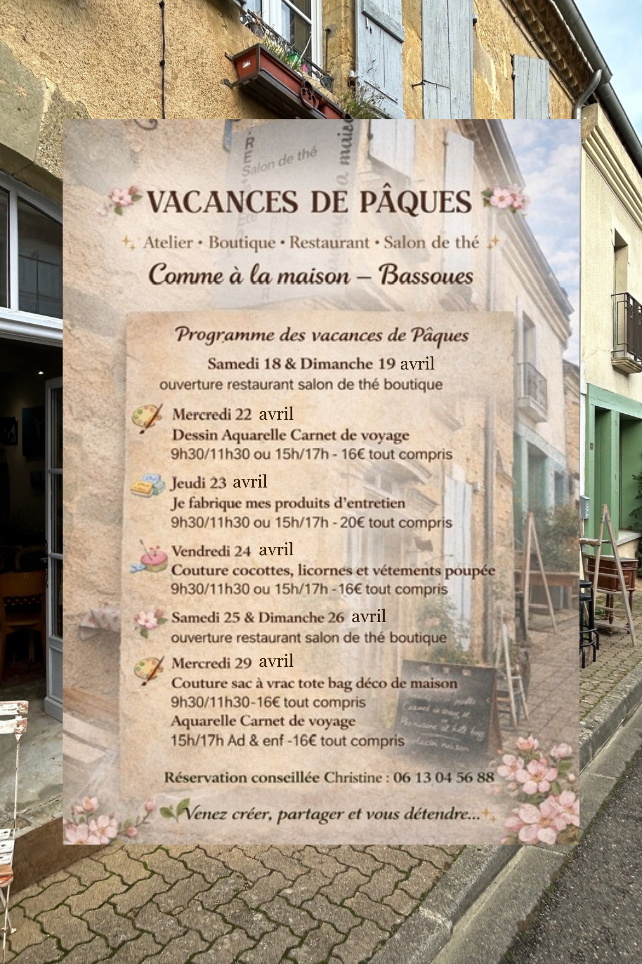 Au sein du salon de thé, « Comme à la maison » vous êtes invité à participer à un atelier créatif, il y en a pour tous les goûts et tous les âges. Venez créer, partager et vous détendre dans une ambiance conviviale. Vous pouvez aussi tout simplement venir boire une boisson, manger ou encore profiter de la boutique et de l’espace galerie.