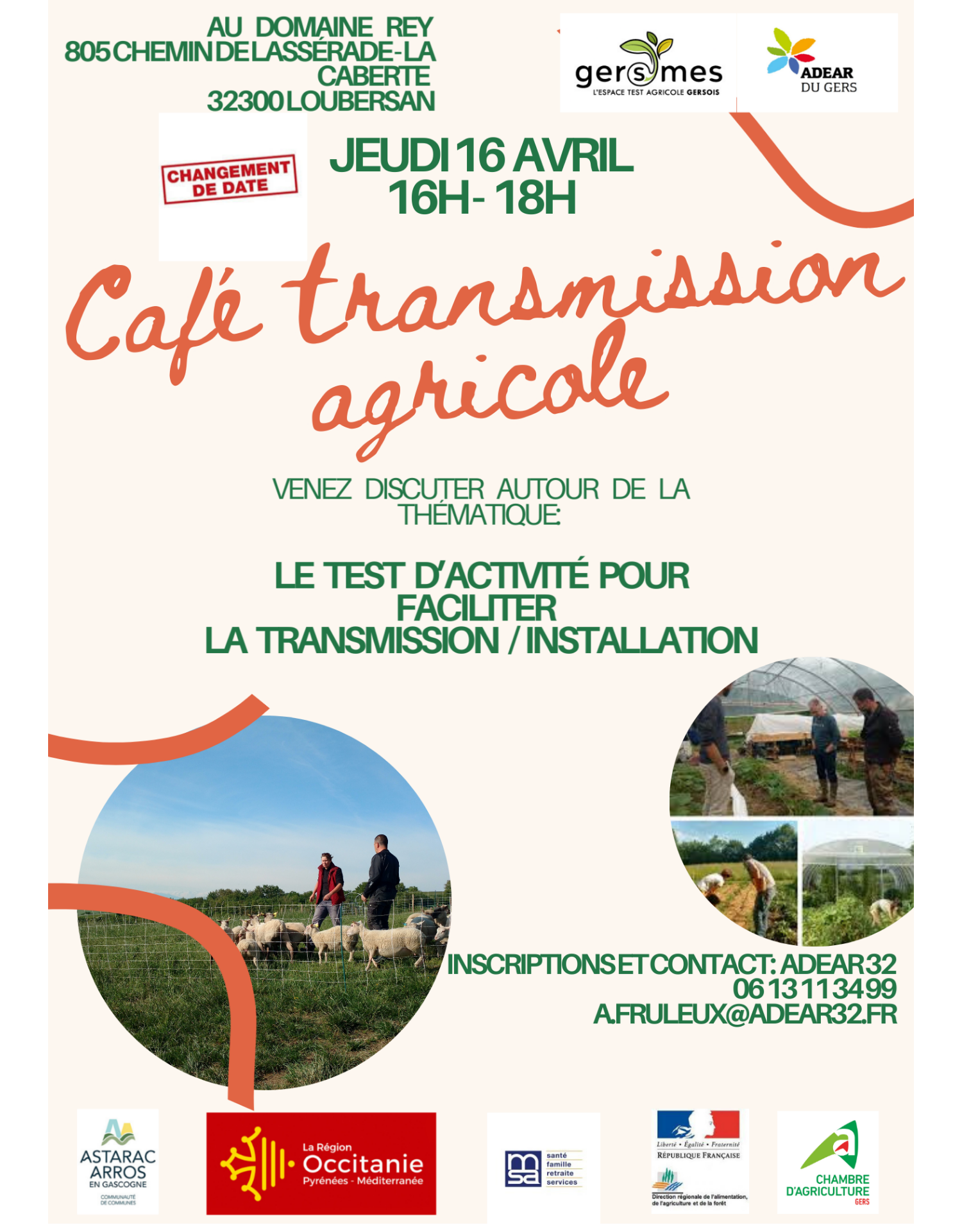 Café transmission agricole La Caberte805 chemin de Lassérade32300 Loubersan
