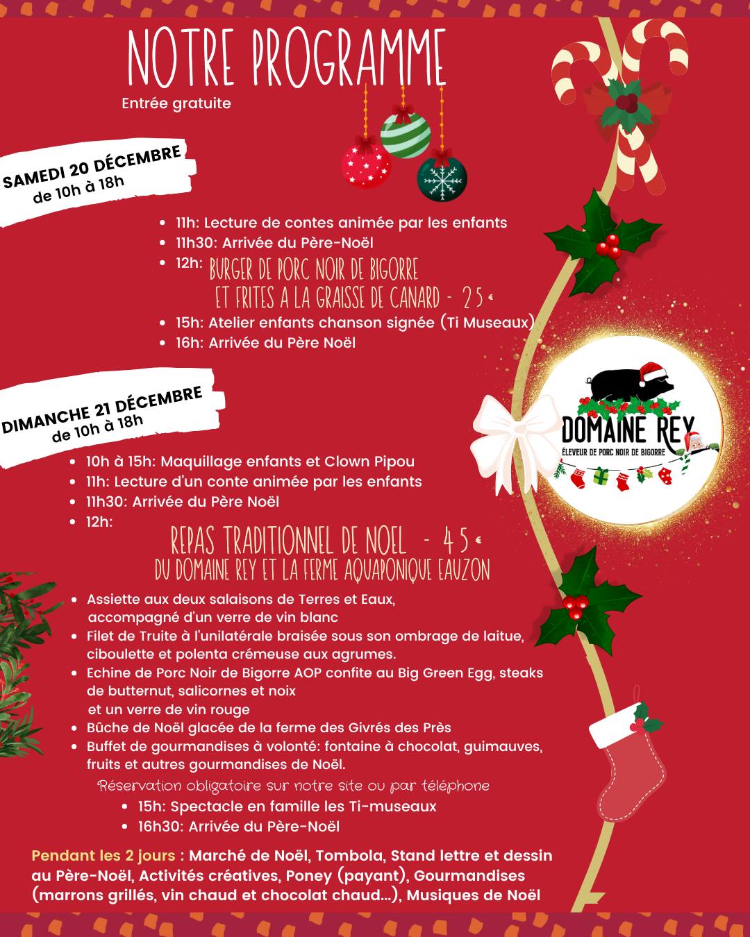 • Gourmandises de Noël à savourer : marrons grillés, crêpes maison, vin chaud, chocolat chaud, accompagnées de musiques de Noël