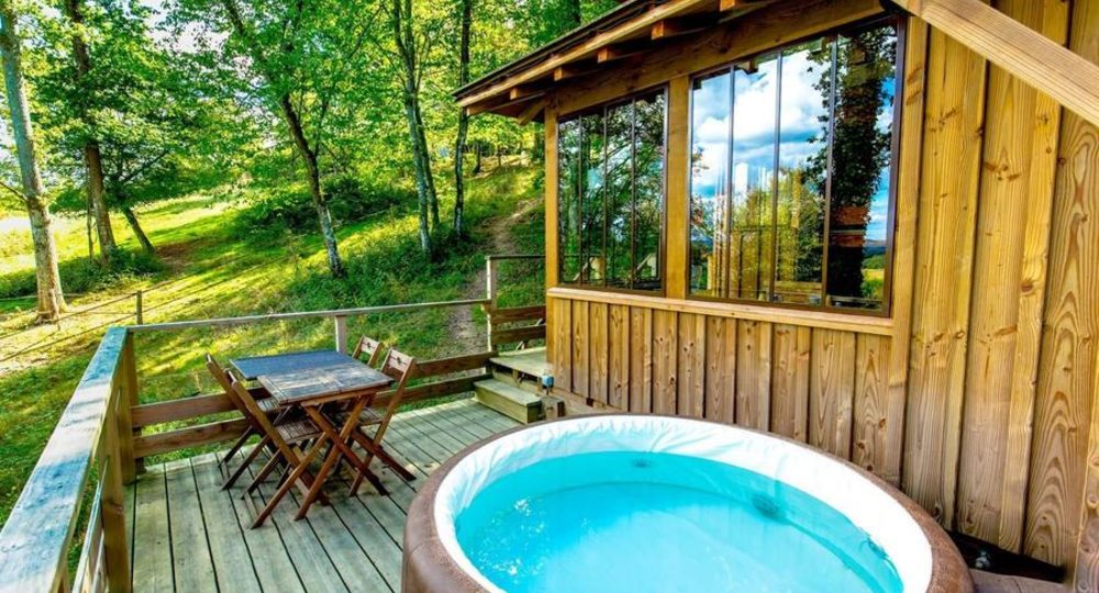 La kitchenette est équipée comprend vaisselle, cafetière Senseo, produits d’entretien et tout le nécessaire pour un séjour en autonomie. La salle d’eau dispose d’une douche, d’une vasque et de WC. À l’extérieur, détendez-vous dans le jacuzzi privatif chauffé sur une terrasse de 14 m², offrant une vue exceptionnelle sur la nature environnante.