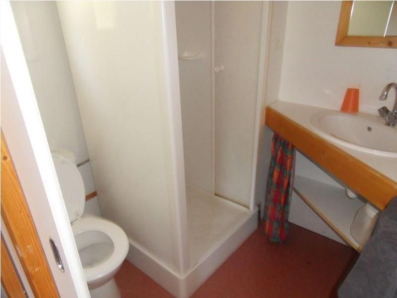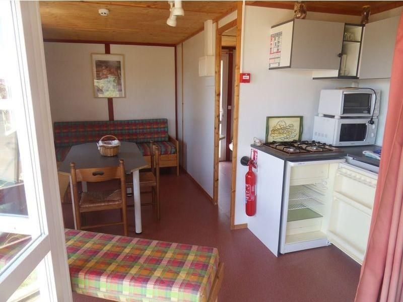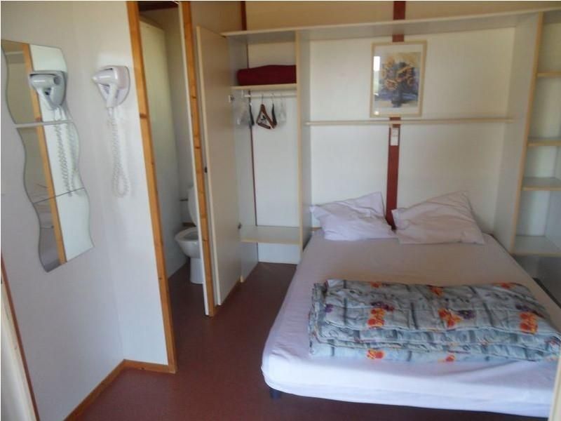 Chalet de 4/6 personnes avec terrasse couverte : séjour/salon (convertible en 140)/coin cuisine (2 ch. (1 lit 140, 1 lit superposé de 80, 2 lits 80), salle d’eau/wc.