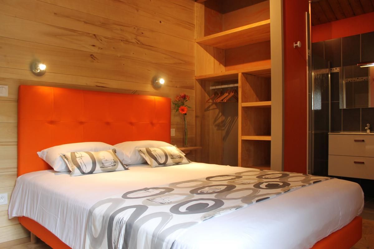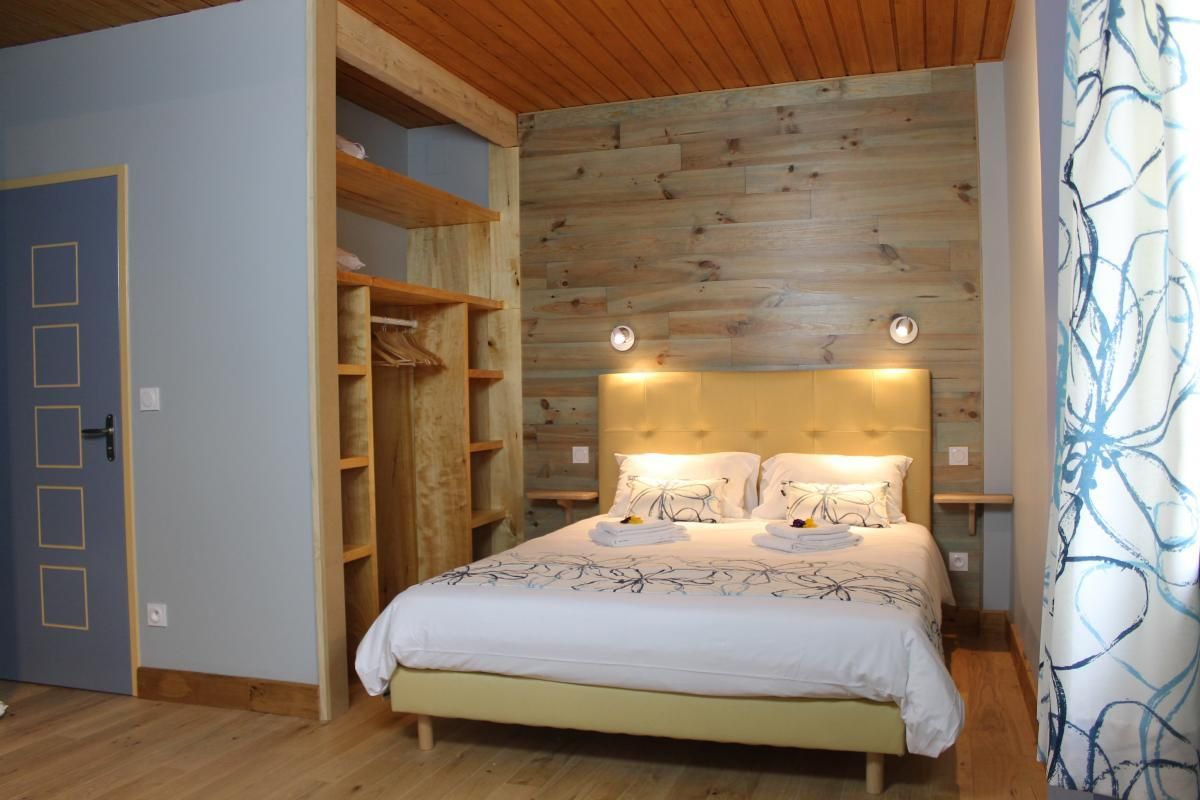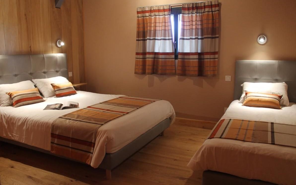 Toutes les chambres sont climatisées et disposent d’une salle d’eau et de toilettes privatives. 4 chambres à l’étage : Chambre Pêche Triple avec 1 lit 90 et 1 lit 160, fenêtre donnant sur coursive/salon. Ce salon baigné de lumière grâce à sa grande baie vitrée offre aux vacanciers des 5 chambres, détente (TV, livres…) et vue panoramique. Chambre Mirabelle Triple avec 1 lit 90 et 1 lit 160. Chambre Noisette avec 1 lit 160. Chambre Pomme Familiale avec 2 lits 160 et 1 lit 90. Au rdc : Chambre Prunelle avec 1 lit 160, accessible aux personnes à mobilité réduite.