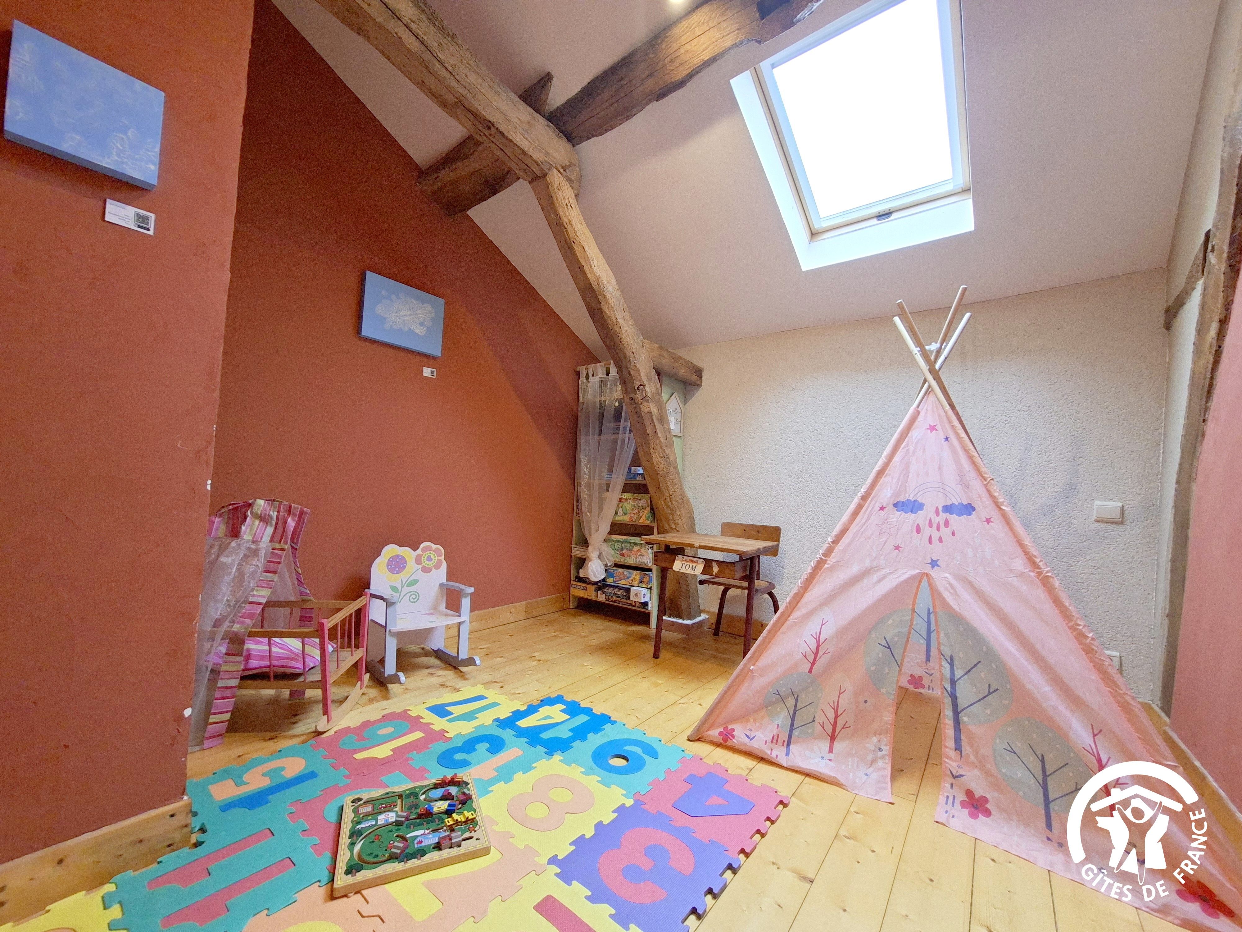 Profitez de la vue sur la campagne, tout en vous baignant dans la piscine privée protégée par un abri (8×4 – prof: 1.4) ou en sirotant un apéritif sur la grande terrasse ou tout simplement en vous prélassant dans le jardin.