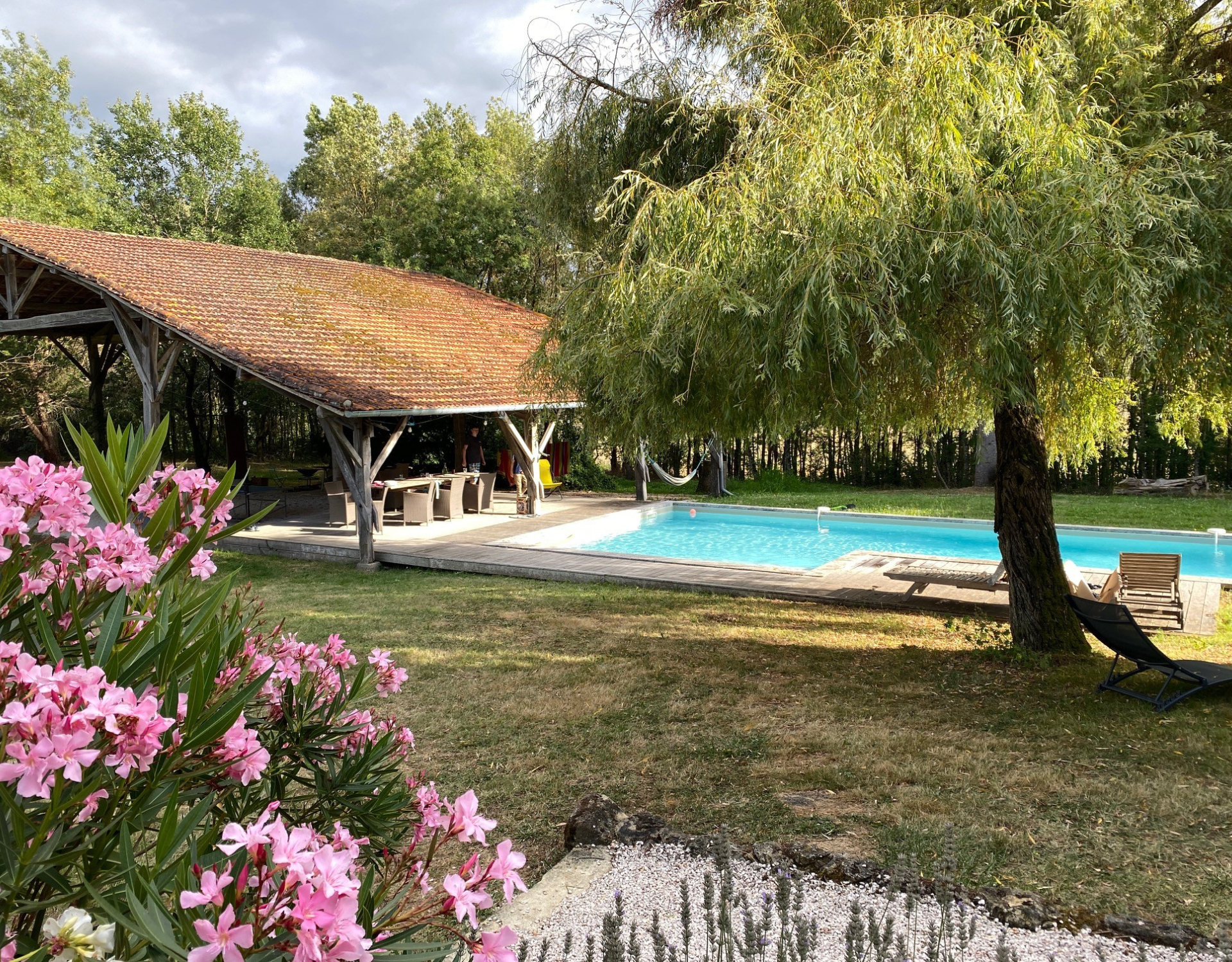 À votre disposition une maison de 250m2 avec une grande piscine au sel de 75m2, 3 sdb, 4-5 chambres doubles ou triples et un dortoir ( 4 à 5 couchages), plusieurs terrasses : au soleil, celle de la grande halle couverte… Grand jardin arboré et intimiste.