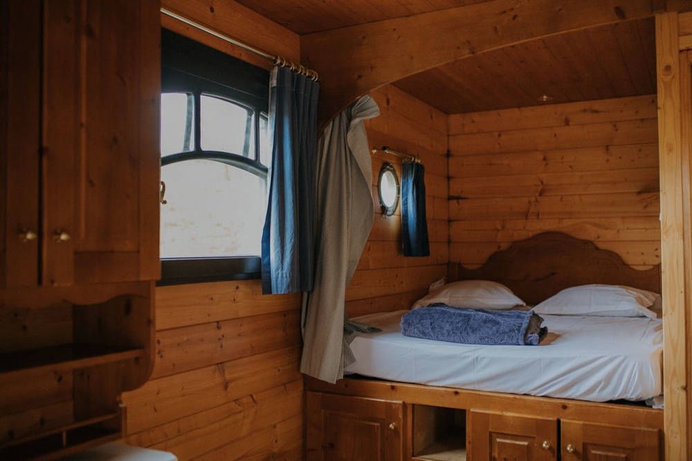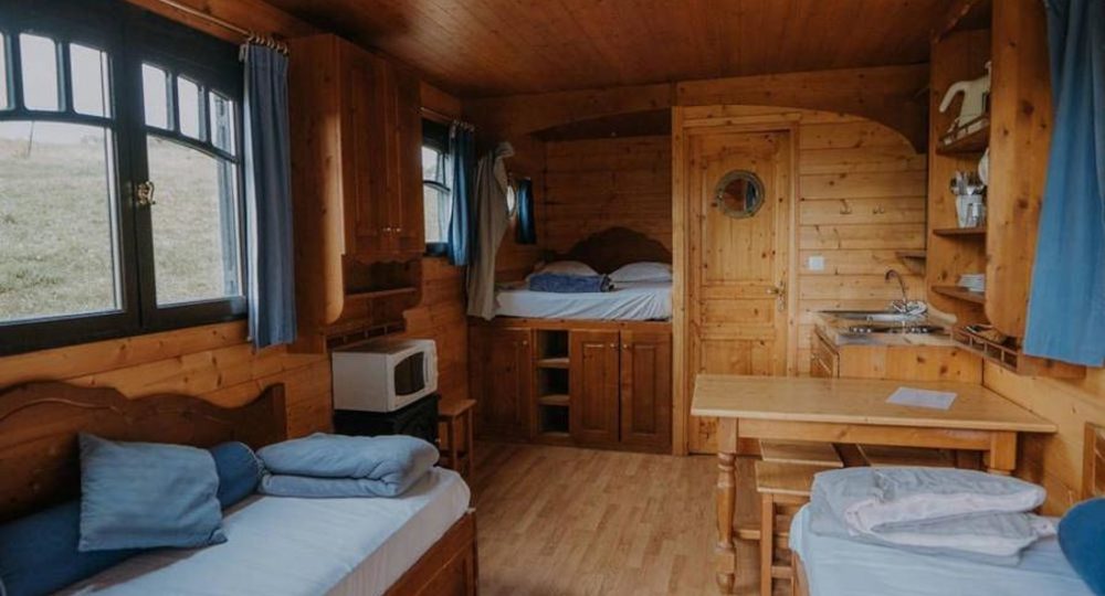 La roulotte vous accueille dans un cocon chaleureux et soigneusement agencé. L’espace nuit se compose d’un lit double en alcôve, de deux lits banquettes ainsi que d’un lit gigogne, offrant à chacun son coin de repos. Chauffée et entièrement équipée, elle est prête dès votre arrivée : lits faits et linge de toilette fournis pour un séjour sans contraintes. Vous disposez également d’un espace cuisine pratique avec plaques de cuisson, micro-ondes, cafetière, bouilloire et barbecue, ainsi que de sanitaires privatifs comprenant douche et WC, pour profiter d’un confort optimal au cœur de la nature.