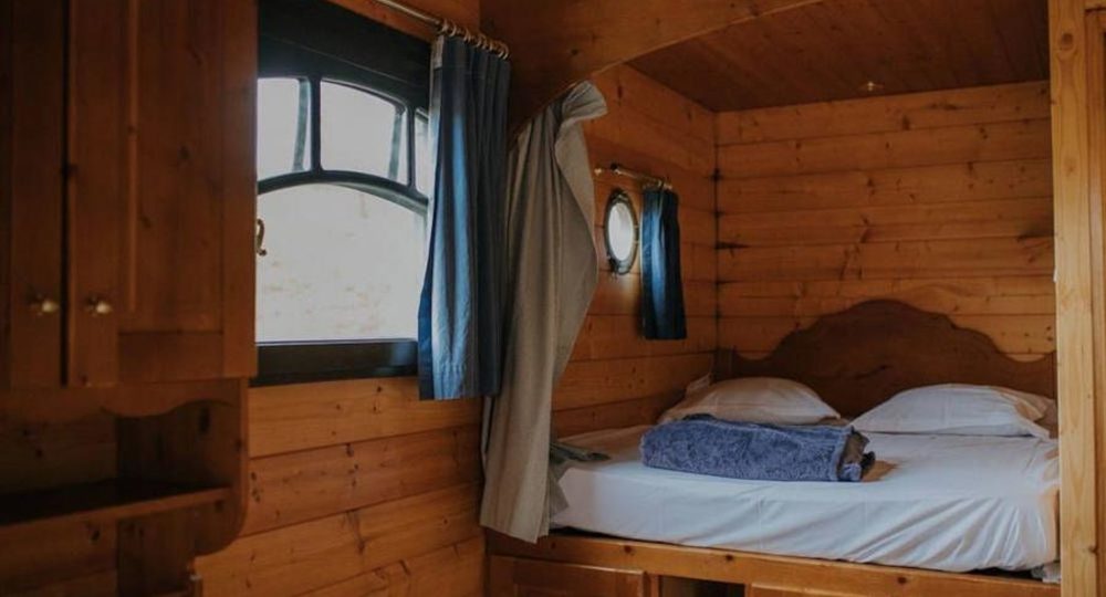 La roulotte vous accueille dans un cocon chaleureux et soigneusement agencé. L’espace nuit se compose d’un lit double en alcôve, de deux lits banquettes ainsi que d’un lit gigogne, offrant à chacun son coin de repos. Chauffée et entièrement équipée, elle est prête dès votre arrivée : lits faits et(…)